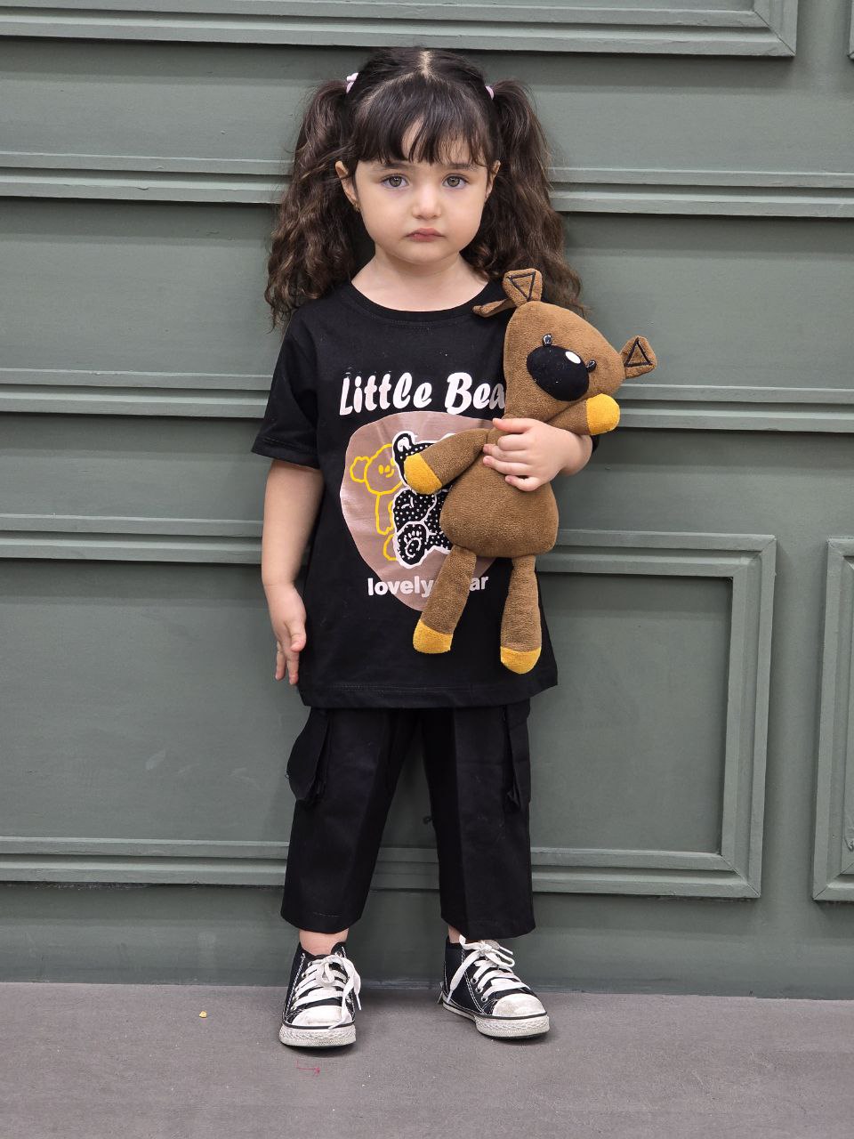 ست بچگانه سه خرس مشکی تیشرت پنبه شلوارک کتان سایز 30 تا 55 | دیباسا | امکان پرداخت درب منزل